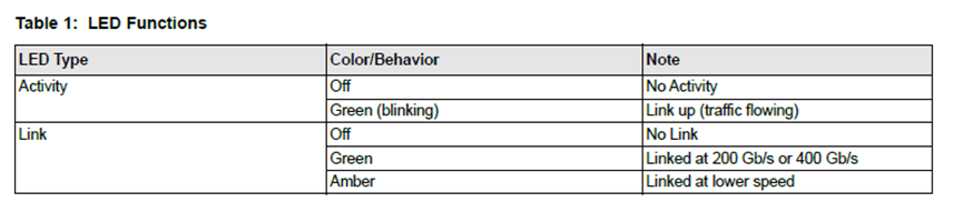 Broadcom P1400GDF30 “Link at lower Speed” Q&A Q: What's mean 'Linked at lower speed' in the Broadcom P1400GDF data sheet? A: Lower speed means lower than target (Max.) speed. It means the LED will turn amber if the link speed is lower than 400G.