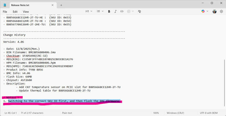 upgrade to latest bmc version it is very important to check the included