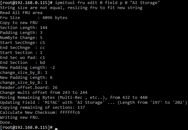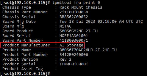 As an example, to change the Product Manufacture from "MiTAC" to another like "AI Storage", you would do the following: