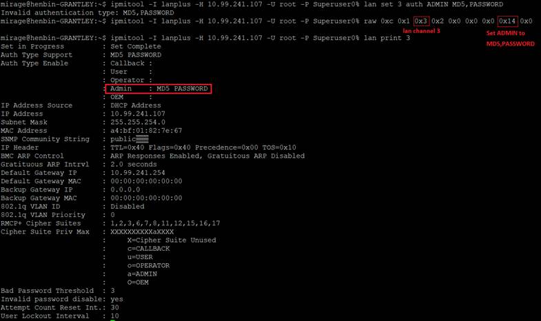After perform raw command , Auth type Enable Admin filed will show MD5 & PASSWORD