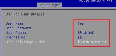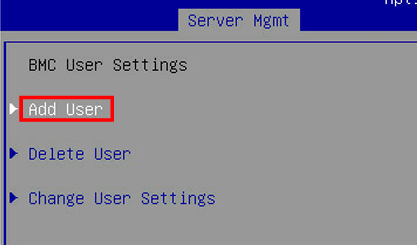 Step 1: Go to BIOS Setup->Server Mgmt->BMC User Settings, Click Add User