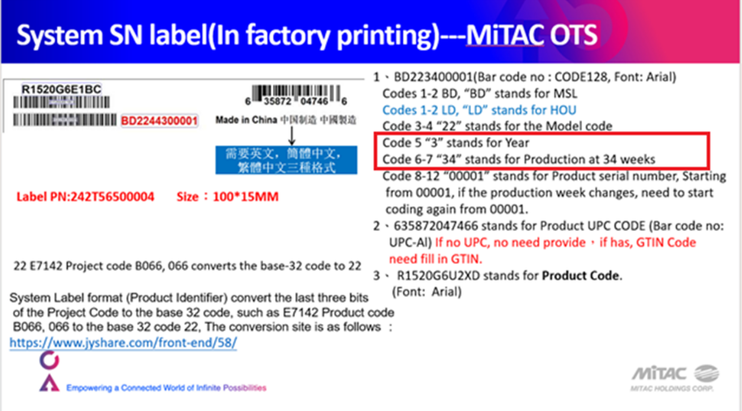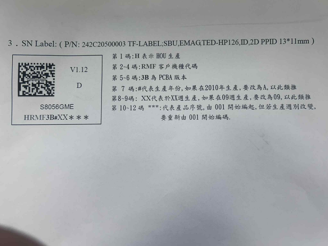 HEDG4AO40F008 H = HOU 4A = PCBA Version O = Production Year 40 = Production Week