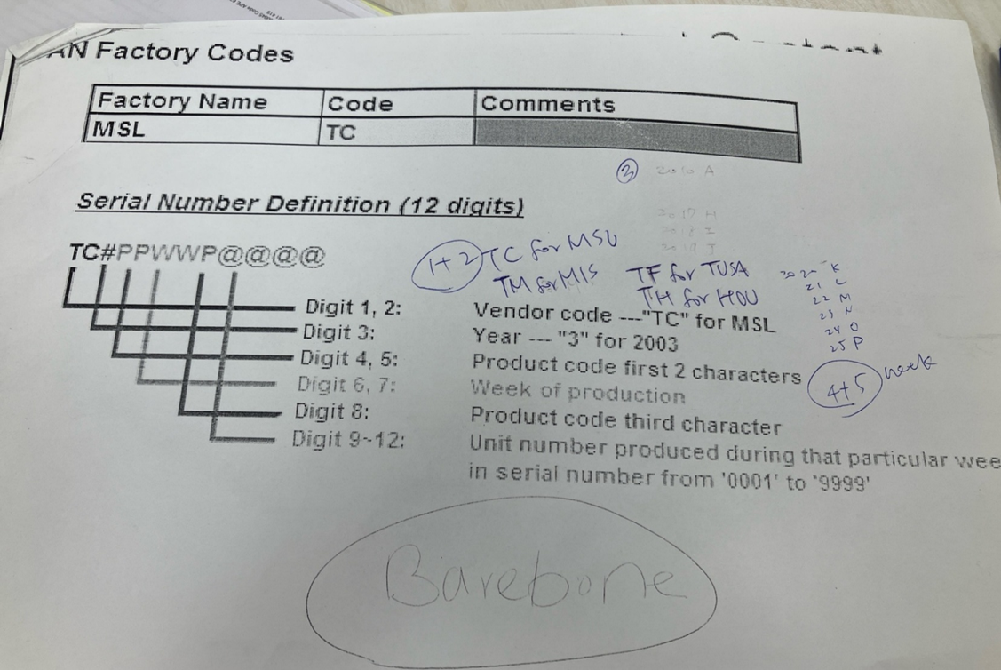 TCOUT48F0049 TC = MSL O = Production Year 48 = Production Week