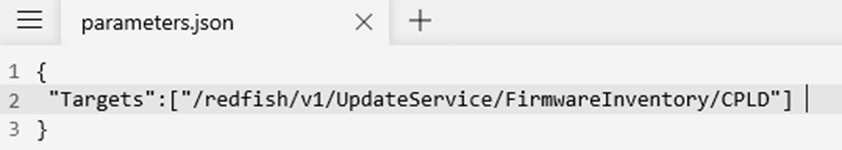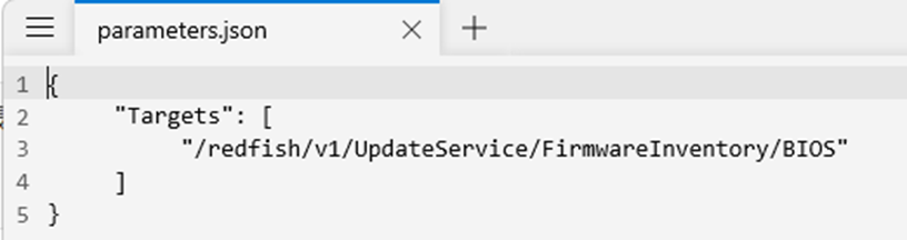 Enter UpdateParameters with File parameters.json, OemParameters with