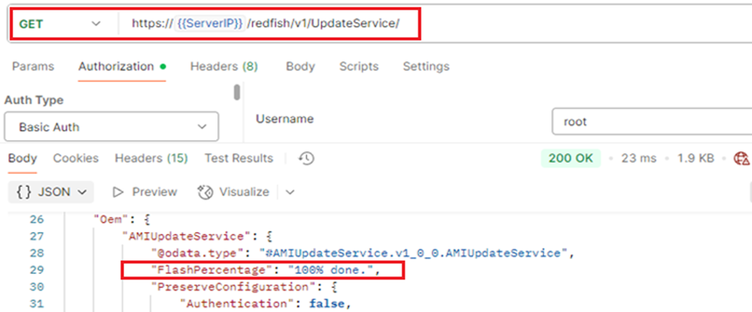 5.1 Check FlashPercentage on "GET https://{{IP}}/redfish/v1/UpdateService"