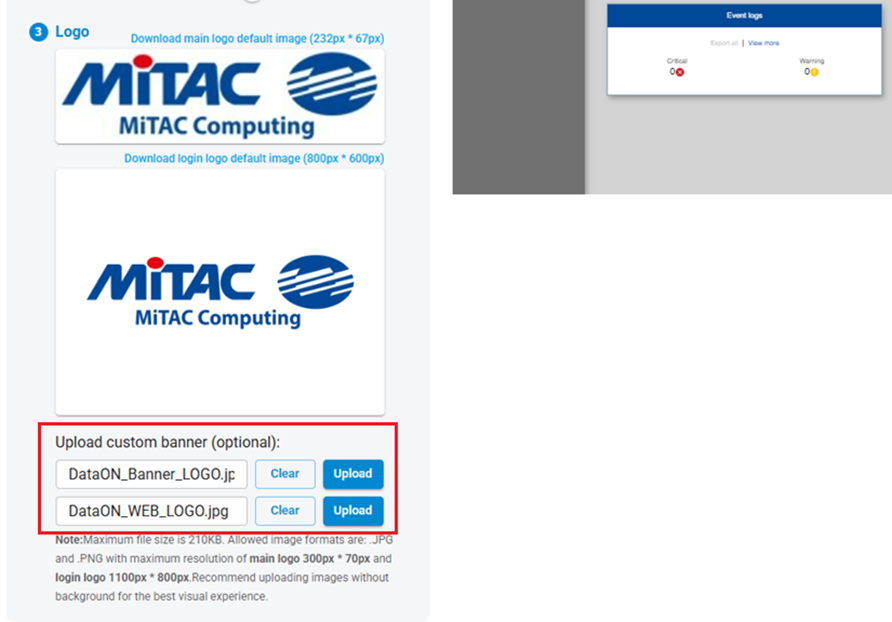Click Upload (Main) then select Banner logo, then click Upload (Login)