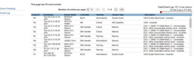 - Clear the SEL log from BMC Web Console>Server Health Tab>Event Log and click Clear Event Log button