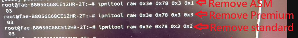 Remove ASM Key: ipmitool raw 0x3e 0x78 0x3 0x1