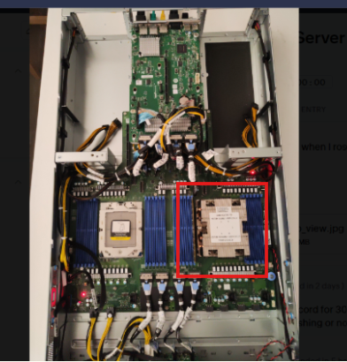 Regarding the B8261T85E8HR-2T-N with one CPU installed, the server will not power on after the motherboard was replaced. Below is the photo that shows the CPU is installed in socket 1 instead of socket 0.