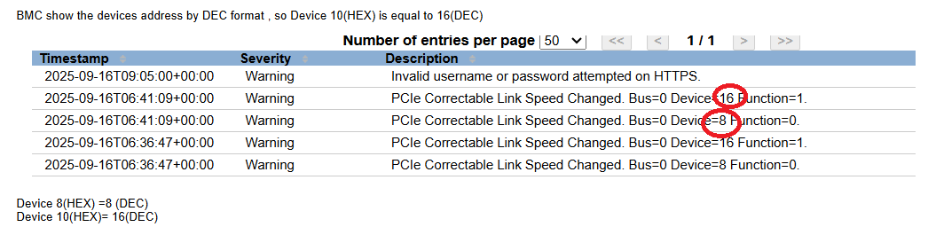 Why D50DNP BMC report PCIe Correctable Link Speed Changed?